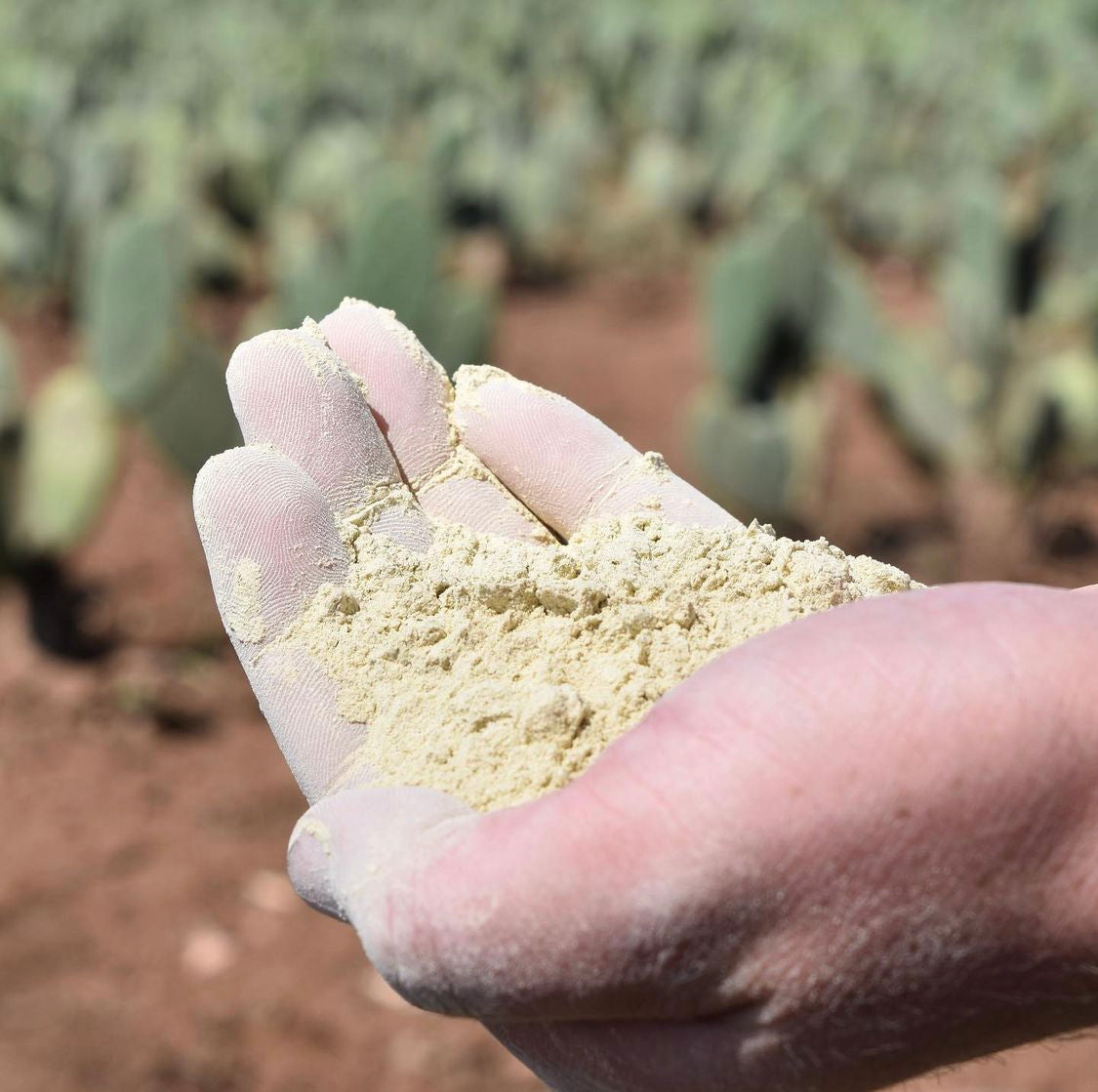 The mature leaves are harvested, leaving the cacti unharmed to enable repeated harvesting.